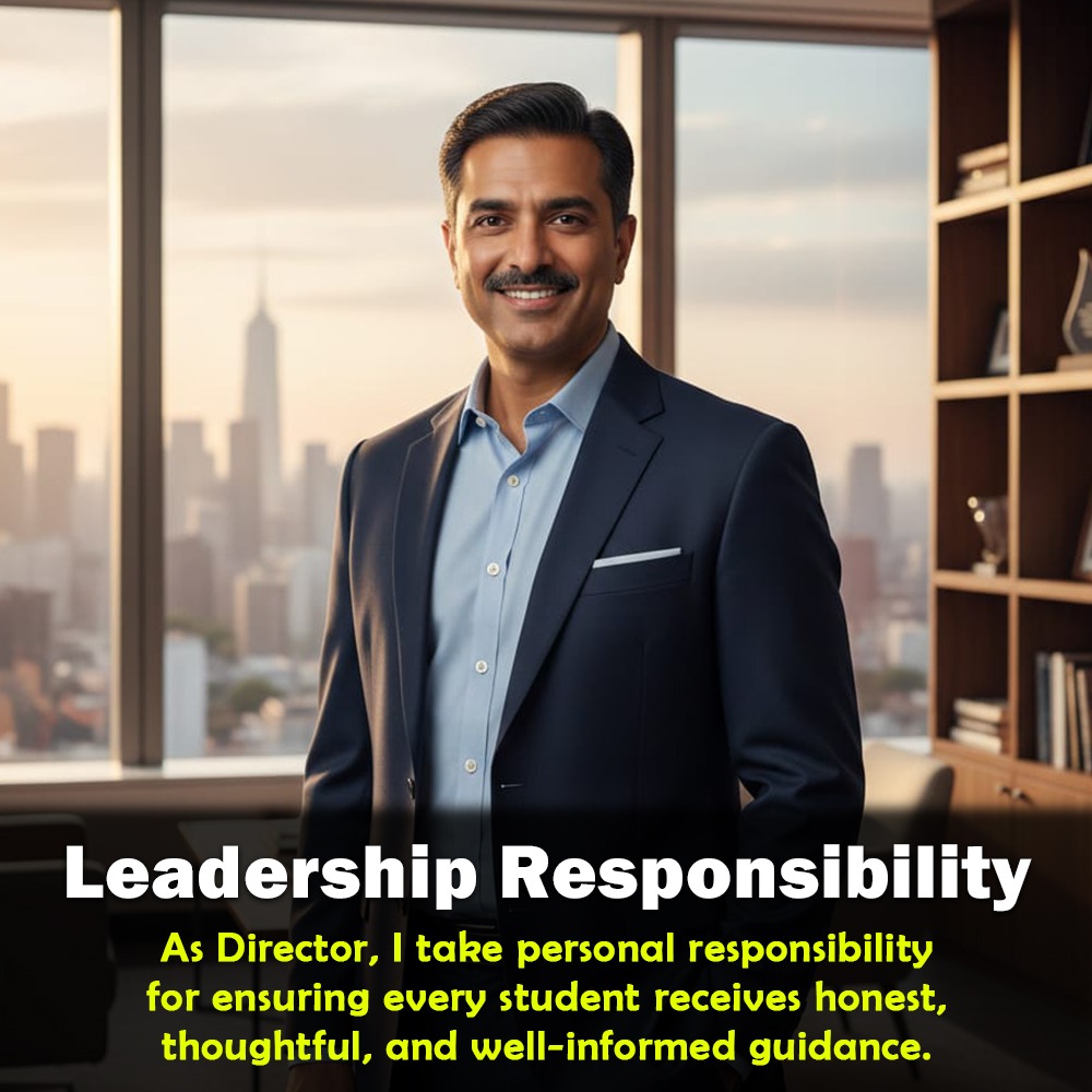 It gives me immense pleasure that you showed a trust in us and embraced our expertise in Indian education. I would assure you that you have made one of the wisest decision of your life by choosing us. Our philosophy from the very beginning has always been to guide our students in best. Our goal is “sobka sath, sabka education”. We believe in fostering globalization across borders. Studying and living overseas broadens the outlook of not just the student or the worker, but his community and country as a whole. We are committed to imparting the best possible